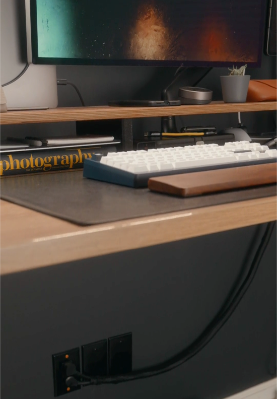 "It keeps every wire tucked away, giving your workspace that sleek, clutter-free look."